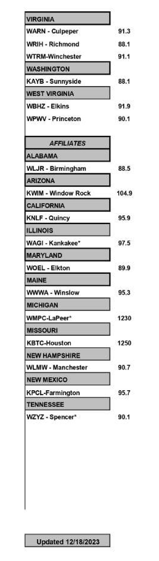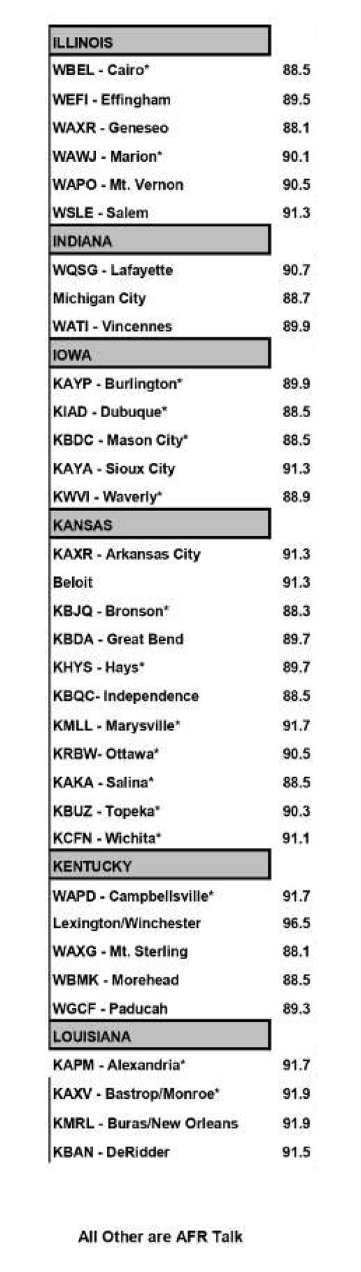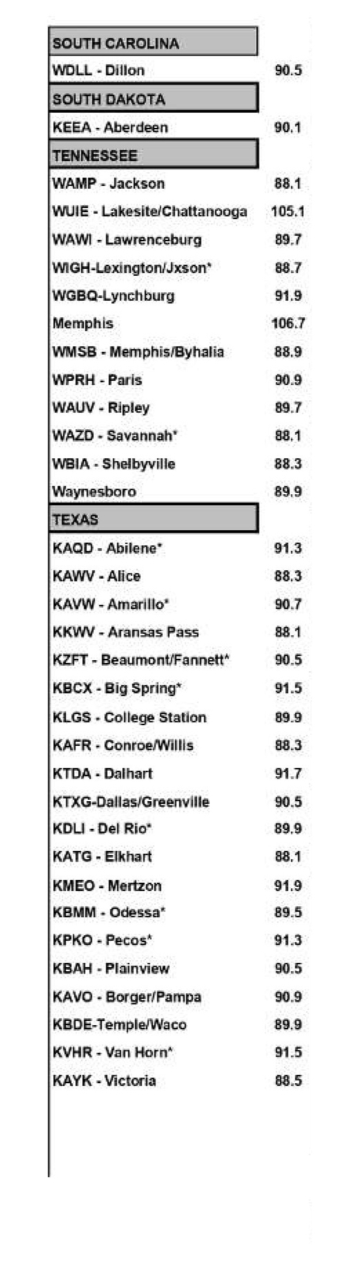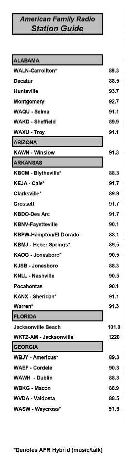 American Family Radio Station Guide
